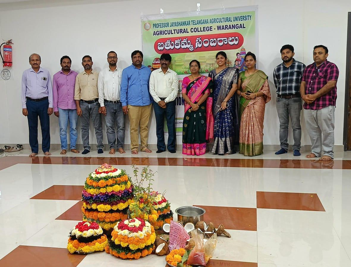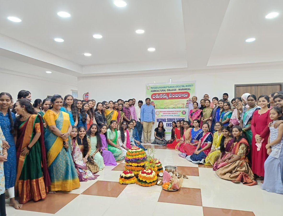 The NSS Unit of Agricultural College, Warangal, in coordination with the Celebration/Cultural Activities Club, organized the Bathukamma Celebration on 25.09.2025 at the college premises. The programme was held to promote and preserve the rich cultural heritage and traditions of Telangana. Faculty members and students participated wholeheartedly, making the event vibrant and culturally enriching.