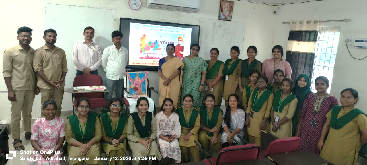 National Youth Day – 2026 was grandly celebrated at the Agricultural College, Adilabad, on the occasion of Swami Vivekananda’s birth anniversary. During the program, speakers addressed Swami Vivekananda’s life, his messages to the youth, and the role of youth in nation-building.