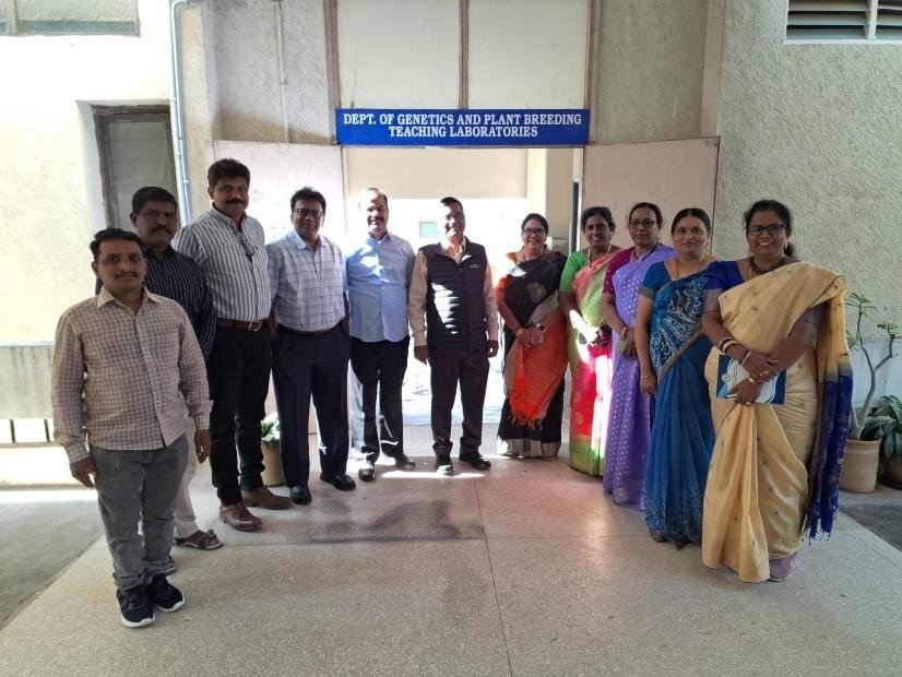 The faculty comprises three Professors (AL-15), three Professors (AL-14) and one Assistant Professor. The students conduct research on crops such as paddy, sorghum, maize, millets, redgram, greengram, soybean, chickpea, sunflower, safflower, groundnut, fodder jowar, cowpea, cotton, castor, and sesame, focusing on diverse areas including QTL identification, development of tightly linked molecular markers, gene introgression, resistance breeding, biofortification, genetic variability and gene action studies. The Department maintains strong collaborations with national research institutes such as IIRR, IIMR, IIOR, CRIDA etc., as well as the international institute, ICRISAT. Faculty and students regularly publish research papers in reputed journals with high NAAS rating and impact factor. Graduates of the Department secure employment in ICAR, State Agricultural Universities, the Department of Agriculture, the banking sector and various private organizations.