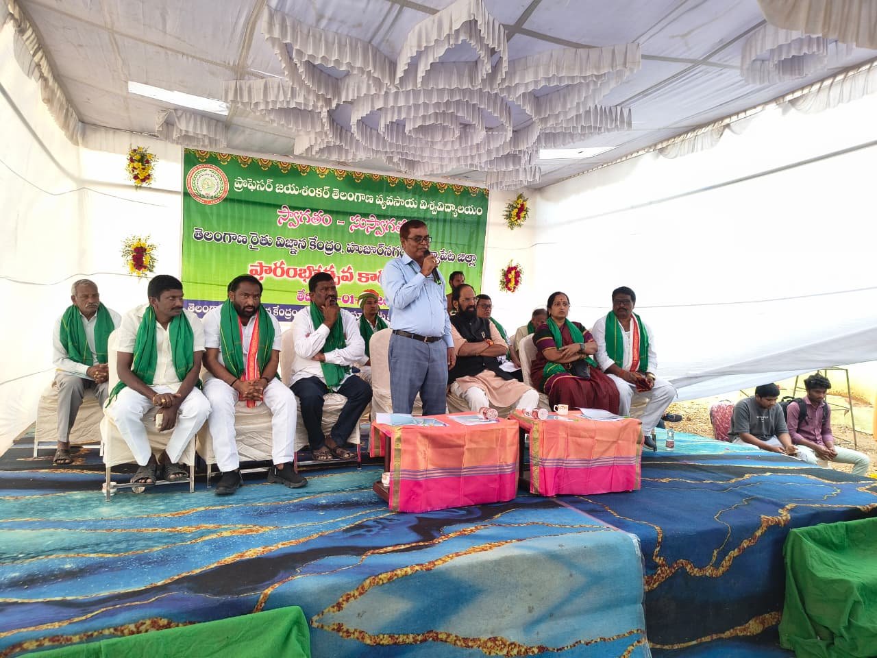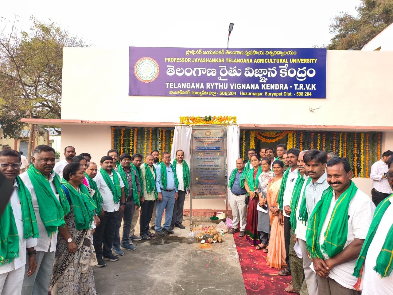The Telangana Rythu Vignana Kendra (TRVK) at Agricultural Market Committee premises of Huzurnagar, Suryapet District was formally inaugurated on 23rd January 2026 by Prof. Aldas Janaiah, Hon’ble Vice Chancellor, Professor Jayashankar Telangana Agricultural University (PJTAU), in the august presence of Capt. Nalamada Uttam Kumar Reddy Hon’ble Member of Legislative Assembly, Huzurnagar and Minister for Irrigation & CAD, Food & Civil Supplies, Telangana. Dr. K. Chandra Shaker, Nodal Officer, TRVK, Suryapet warmly welcomed the Chief Guest, dignitaries, farmers, officials from allied departments, and representatives of print and electronic media to the inaugural programme. Presiding over the function, Capt. Nalamada Uttam Kumar Reddy, Hon’ble Member of Legislative Assembly, Huzurnagar and Minister for Irrigation & CAD, Food & Civil Supplies, Telangana stated that TRVKs will serve as vital hubs for farmer–scientist interaction, facilitating the transfer of advanced agricultural technologies from laboratories to farmers’ fields. He expressed his gratitude to the Hon’ble Vice Chancellor of PJTAU for allotting the TRVK to Huzurnagar constituency of Suryapet district. He assured to give Rs. 25 lakhs from MLA grants for the preliminary establishment of the TRVK. He emphasized the need to strengthen Research and Development activities and advised the university to focus on regular farmer training programmes and promotion of best agricultural practices at the village level. Hon’ble Vice Chancellor Prof. Aldas Janaiah, PJTAU in his address, emphasized the importance of bridging the gap between agricultural research scientists and farmers to address complex farming challenges. He also stated that PJTAU is committed to establishing TRVKs in every district to ensure effective transfer of technology, including improved crop varieties, efficient water and fertilizer management, pest and disease control, and modern farm mechanization. He also stressed the role of TRVKs in empowering farmers through training programmes, field days, and diagnostic visits. Smt A Ramulamma, SMS, KVK, Kampasagar proposed the vote of thanks, The programme was attended by Dr. C. Narendra Reddy, Board Member, PJTAU, Dr. L. Krishna, Associate Director of Research, Southern Telangana Zone; Dr. K. Chandra Shaker, Nodal Officer, TRVK; Shri G Sridhar Reddy, District Agriculture Officer; Sri Nageshwar Sharma, District Marketing Officer, Smt Deshmukh Radhika, Chairperson, AMC, Huzurnagar and several other dignitaries. Officials from allied and other departments also participated in the programme. Around 250 farmers from different villages of the district actively participated in the inaugural event.