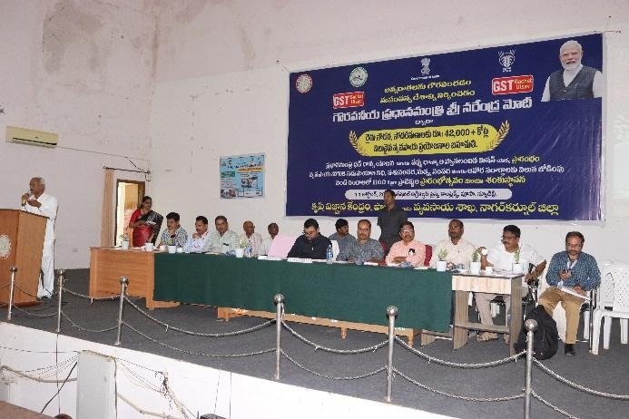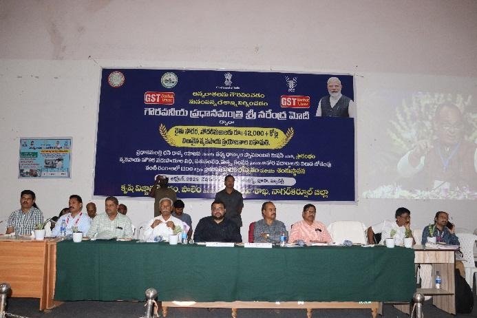 KVK, Palem in collaboration with Department of Agriculture organized “Pradhan Mantri Dhan Dhanya Krishi Yojana (PM-DDKY) & Mission for Aatmanirbharatha in Pulses Schemes Launch – Live webcast and Farmer Scientist Interaction” at Auditorium, RARS, Palem, Bijinepally (M), Nagarkurnool (D) on 11.10.2025. Sri. B. Santhosh, District Collector, Nagarkurnool, graced the occasion as Chief Guest and addressed the gathering. He stated that the launch of PM-DDKY and Mission for Aatmanirbharatha in Pulses provides a great opportunity for small and marginal farmers to enhance agricultural productivity and increase their income. He further mentioned that the programme will be implemented for the next five years, ensuring long-term benefits for the farming community. Sri. N. Yashwanth Rao, District Agriculture Officer, Nagarkurnool, highlighted the major objectives and significance of the PM-DDKY programme, which include promoting crop diversification and sustainable agricultural practices, supporting allied sectors such as dairy, fisheries, and poultry, and encouraging women and youth participation in agriculture and allied activities. He also emphasized the importance of post-harvest management, value addition, and reduction of post-harvest losses.
