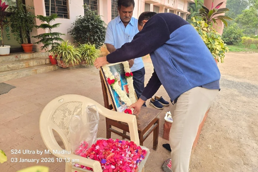 “Respected ADR, RARS, Warangal, along with all the staff members of RARS, Warangal, paid floral tributes to Smt. Savitribai Phule on the occasion of her birth anniversary at the ADR Office, RARS, Warangal.