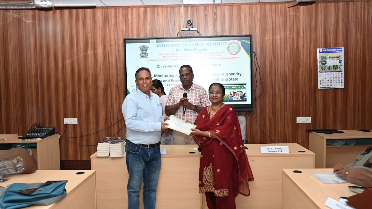 The Extension Education Institute (EEI), Rajendranagar, Hyderabad has organized On-campus training programme on Planning, Monitoring and Evaluation of Animal Husbandry Programmes and Projects in ARD Sector for the Fisheries and ARD Department officers of Odisha state from 11th -15th November, 2025 at EEI, Hyderabad.