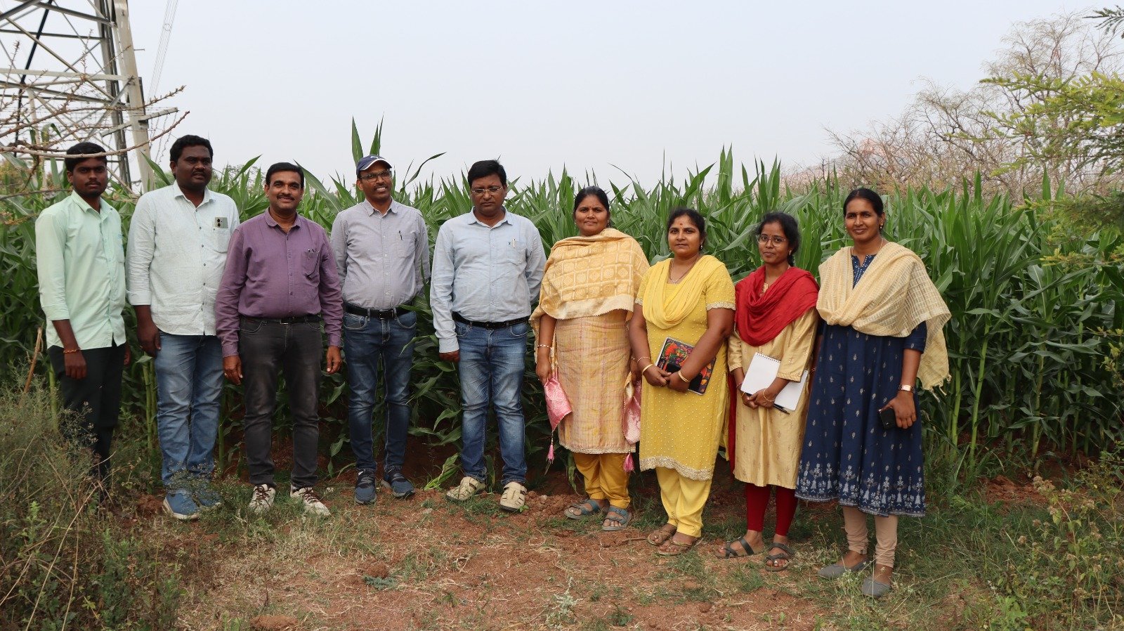 Dr. D. Bhadru, Principal Scientist (Maize & Millets), visited the maize minikit KMH 22-1 at Gussapur village, Siddipet Rural Mandal, Siddipet district on 22.01.2026 along with Dr. Y. Chandra Mohan, Director, ARI, Dr. B. Mallaih, Principal Scientist (Plant Pathology), Dr. D. Sravani, Scientist (Plant Breeding), Dr. Ch. Anusha, Scientist (Entomology) of MRU, ARI, Rajendranagar, Dr. A. Saritha, Scientist (Plant Breeding), ARS, Tornala, and Ms. Navya, AEO, Gussapur. During the visit, the team evaluated the growth and performance of the maize minikit, assessed fall armyworm incidence and interacted with farmers to record their feedback and field-level constraints.