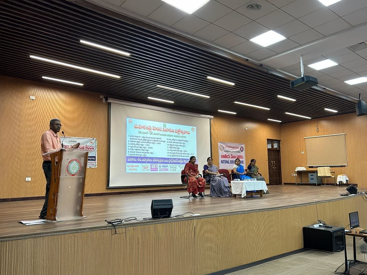 The Women Protection Cell of BJR Agricultural College, Sircilla, conducted an awareness programme on “Women and Child Abuse” on 26 November 2025, from 4:30 PM to 5:45 PM, in collaboration with the Department for Women, Children, Disabled, Senior Citizens and Transgender Welfare, Rajanna Sircilla. The programme was organized in connection with the International Day for the Elimination of Violence Against Women (25 November). The session began with opening remarks by Dr. Razia Sultana, In-charge Academic Dean, Professor (GPBR) and Chairperson, Women Protection Cell, who emphasized the importance of preventing violence against women and children. Smt. Roja, Women Empowerment Coordinator, delivered a detailed briefing on departmental initiatives, government schemes, and essential support services. She highlighted key helpline numbers such as 1098 (Child Helpline) and 181 (Sakhi One Stop Centre), and provided information on the POCSO Act and the Transgender Protection Act, along with real-life examples to enhance student awareness. Mr. Laxmi Raj, District Welfare Officer, further discussed ongoing government efforts to combat abuse and encouraged students to spread awareness among vulnerable groups. The programme concluded with a vote of thanks by Dr. P. Madhavi, Assistant Professor (SSAC) and member of the Women Protection Cell. Students, faculty, non-teaching, and support staff attended the awareness session.