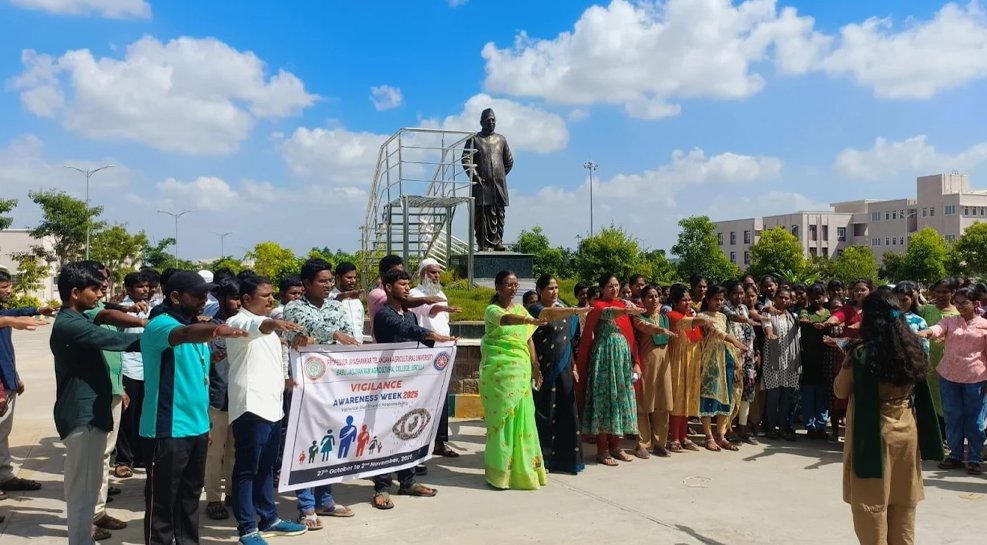 Vigilance Pledge by Associate Dean, staff and students as Observance of Vigilance Awareness Week, 2025 from 27th October, 2025 to 2nd November, 2025 at BJR Agricultural College, Sircilla