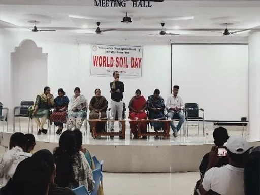 KVK, Wyra celebrated World Soil Day on 05.12.2025 with the global theme “Healthy soils for healthy cities.”. Dr. T Sucharitha Devi (Programme Coordinator) addressed on conserving the health of the soil is need of the hour, Scientists, Dr. T. Pavani enlightened on significance of this day Dr. V. Chaitanya and Mrs. P. S. M. Phanisri addressed on Crop residue burning problems mitigation and management strategies in rice cropping system gave demonstration with soil test kit at Farmer level, Later Programme Coordinator and P.S.M Phanisri visited the farmers field and provided information on different alternatives to stubble burning.